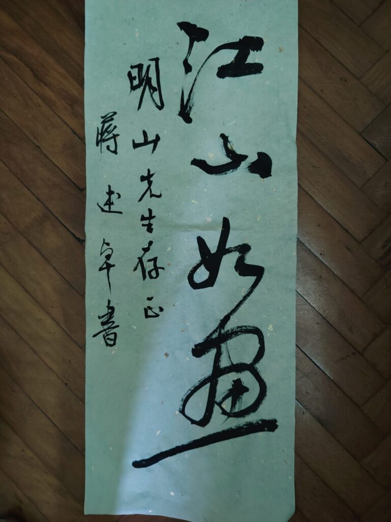 Oggi pomeriggio alle ore 17 e 30 si è inaugurata presso il Palazzo Bellini, in Lungarno Soderini 5 la mostra di arte calligrafica cinese del Maestro Shuzhuo Jiang, che sarà visitabile fino al Primo Luglio. La mostra curata da Milot, organizzata da: Palazzo Bellini / CCCDA In collaborazione con: Sino Italian Design e realizzata da Yan Laichao, Wu Changbei, Xie Zhixjang CCCDA Shanghai Florence. Questa mostra è fondamentale per comprendere l’arte cinese, che parte storicamente proprio dalla calligrafia, espressione ormai quasi unica al mondo di una lingua antica, che continua a sopravvivere in forma ideogrammatica e non alfabetica. La calligrafia, che viene realizzata a pennello, con inchiostro liquido su carta di riso, ha dato quindi origine alla pittura ad acquarello, anch’essa su carta di riso, che continua ad essere tuttora praticata e descritta proprio da brevi poesie di accompagnamento di ogni opera, malgrado le sempre maggiori influenze dell’arte occidentale nel mondo cimese, che però restano più teoriche che pratiche con ad esempio la fama crescente, nel Paese del Dragone, di Leonardo da Vinci e di Caravaggio. Insomma osservare le opere calligrafiche del Maestro Shuzhuo Jiang, uno dei maggiori interpreti contemporanei di quest’arte, in Cina, è come viaggiare a ritroso di millenni, alla ricerca delle origini di una cultura e di una filosofia, affascinanti quanto difficilmente comprensibili per noi occidentali. La mostra è quindi adatta sia agli esteti, che apprezzano l’arte in ogni sua forma, sia ai curiosi che vogliono cercare di capire cosa si nasconde dietro l’arte di Paesi, ormai non più emergenti, ma ormai solide realtà, come la Cina. Di seguito riportiamo l’immagine di un’opera calligrafica del Maestro Shuzhuo Jiang, realizzata all’inaugurazione della mostra, appositamente per chi scrive, con una poesia, basata sul nome ed il cognome, che in cinese si traduce “Ming” (Luca) “Shan” (Monti).